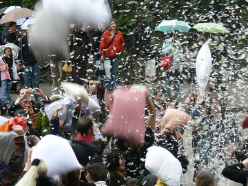 Flash Mob é um termo antigo que atualmente significa aglomerações de pessoas num local público para realizar uma ação que foi previamente combinada, normalmente através de e-mails e meios de comunicação social em geral.  Um flash mob que ficou conhecido é o de guerra dos travesseiros, que vem sendo praticado em várias cidades do mundo, onde várias pessoas combinam pela Internet um local e horário para se encontrarem e levam consigo seus travesseiros para “guerrearem”.