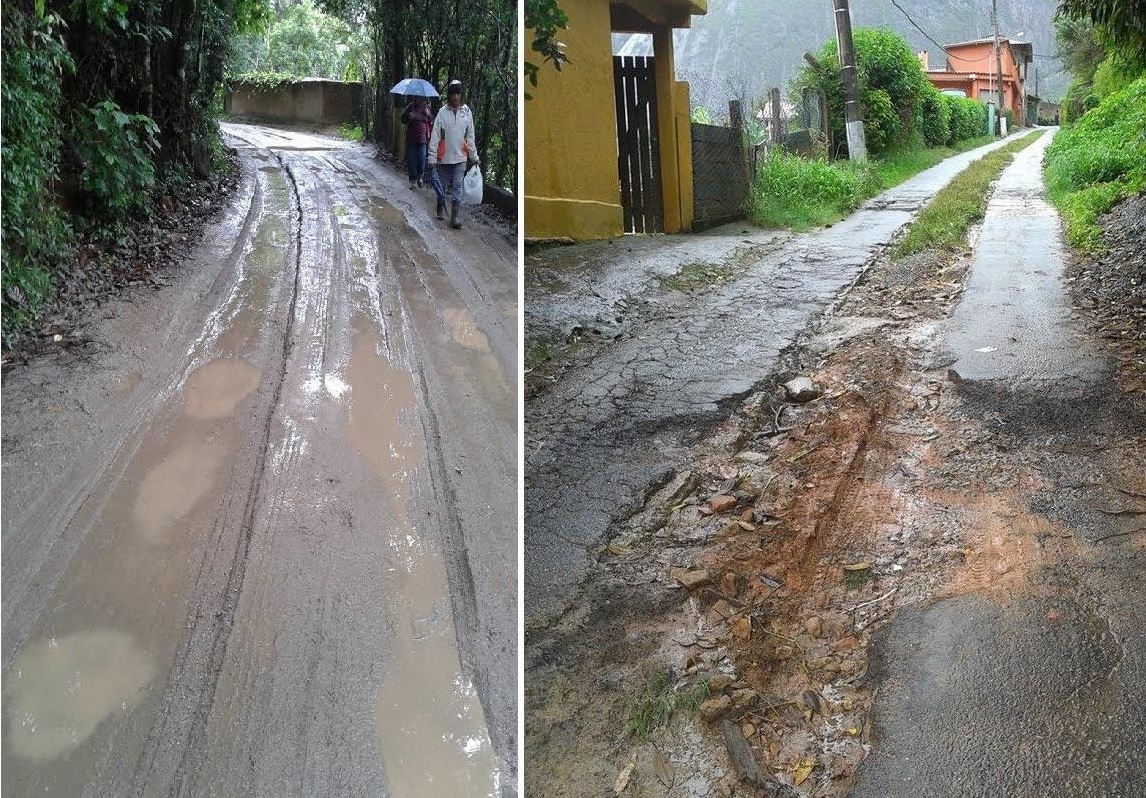 Já locais em que as ruas são praticamente de terra, os veículos mal conseguem passar, como na Rua Bolívia, em Nogueira. “O caminhão de lixo subiu atolou e acabou virando tendo que esperar outro para ser rebocado. O motorista informou que teremos que levar o lixo na lixeira lá debaixo porque não vão mais subir aqui”, informou uma moradora.