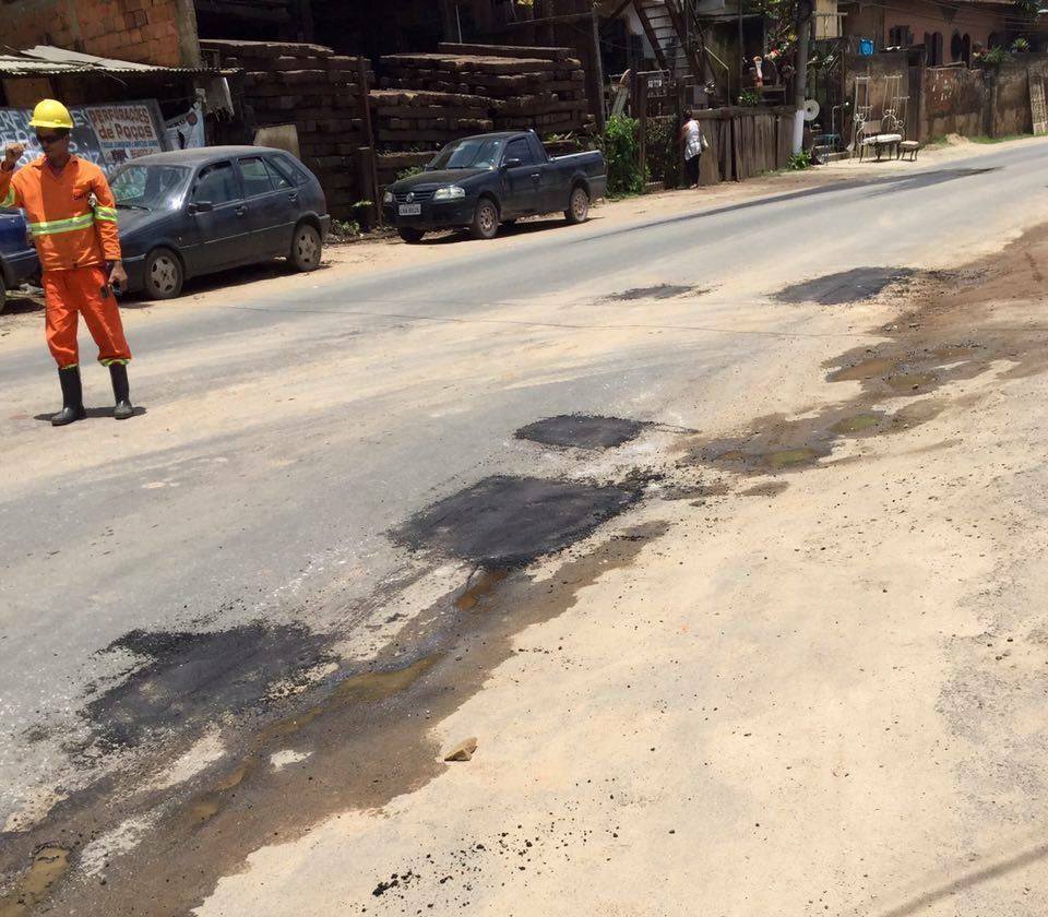 Atualização: A imagem abaixo mostra que os buracos em Itaipava começaram a ser tapados neste sábado (23).