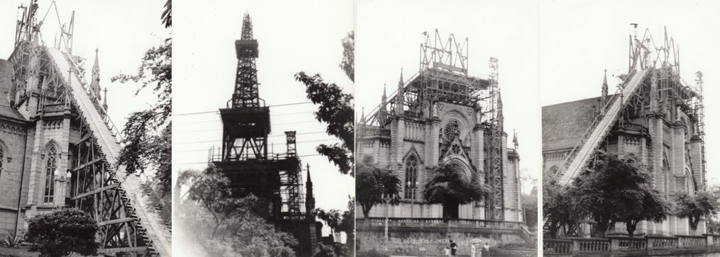 Os vitrais com temas diversos, parte realizados por C. Champineulle (Paris – 1928-32) e parte por S. Sorgenicht (São Paulo), foram colocados na proporção em que eram entregues.