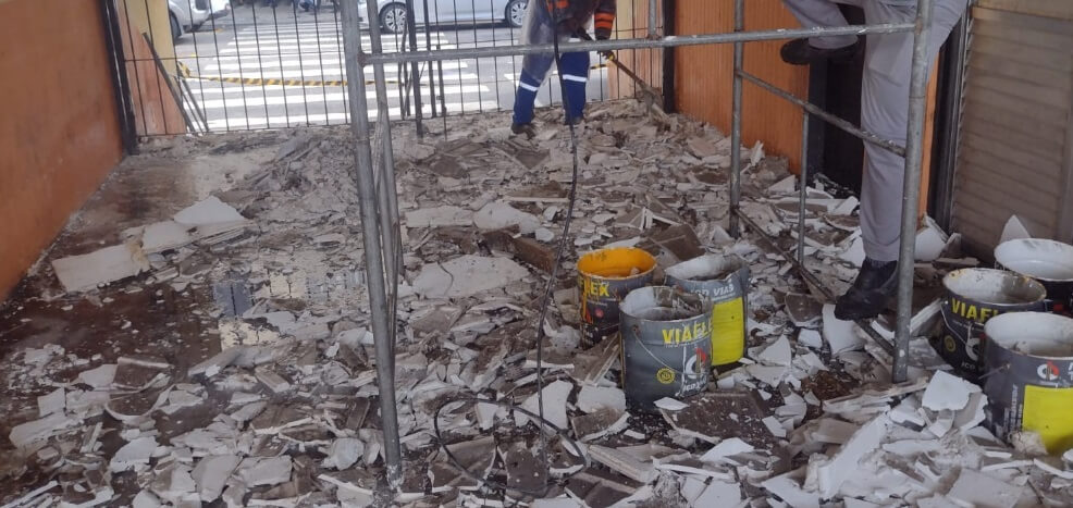 CPTrans retira forro de gesso com infiltrações no Terminal do Centro