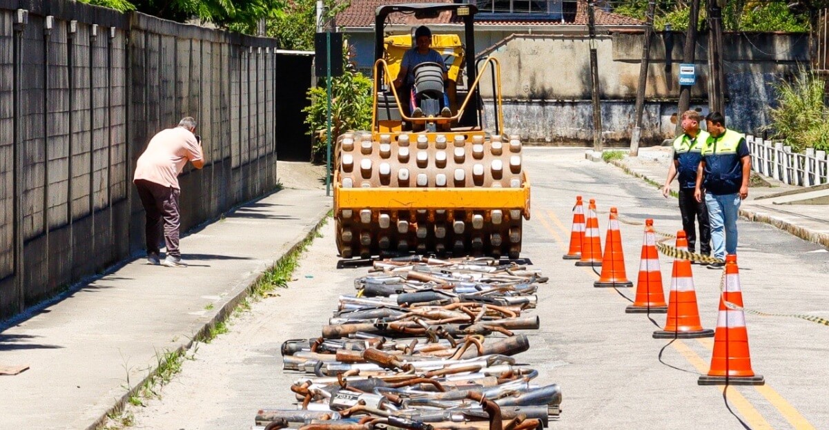 A ação simbolizou o combate aos escapamentos barulhentos e às irregularidades que comprometem o sossego público. Mais de 600 equipamentos apreendidos em fiscalizações ao longo dos últimos meses foram inutilizados na área de exame de habilitação para motos, no bairro Independência.