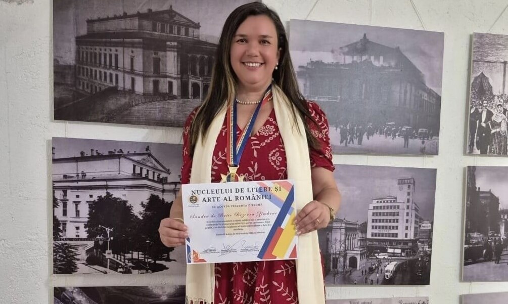 A professora, jornalista e escritora petropolitana Sandra Brito foi um dos grandes destaques da Semana Cultural Brasil – Romênia, promovida pela Delegação Internacional das Academias de Letras e Artes e a Embaixada Brasileira, em outubro. O evento reuniu escritores, artistas e intelectuais dos dois países em uma série de atividades voltadas à literatura, música e diplomacia cultural.