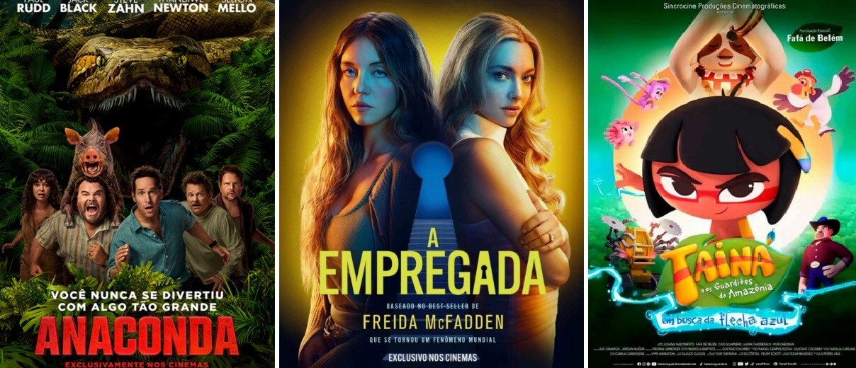 Nesta semana, os filmes “A Empregada”, “Anaconda”, “Bob Esponja: em busca da calça quadrada”, “Tainá e os Guardiões da Amazônia em busca da flecha azul”, “Avatar: Fogo e Cinzas”, “Five Nights at Freddy’s 2” e “Zootopia 2” estão em cartaz nos cinemas de Petrópolis.