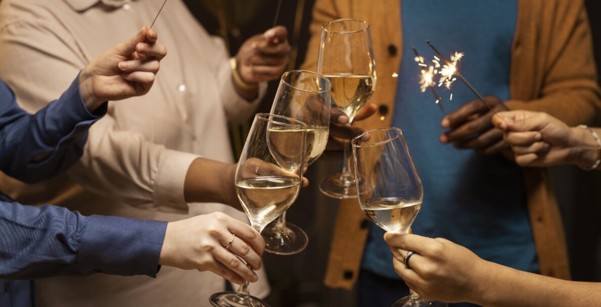 Queima de fogos, DJ ao vivo e brinde da meia-noite