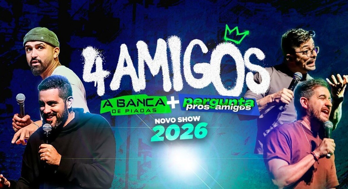 Dihh Lopes, Thiago Ventura, Afonso Padilha e Márcio Donato apresentam novas piadas, histórias e interações, prometendo uma noite de humor afiado e autenticidade, com a volta da “Banca de Piadas”. O quadro de sucesso será apresentado e gravado em todos os shows, garantindo momentos de improviso e muitas gargalhadas. No final do show acontece ainda o “Pergunta pros amigos”, com a participação da plateia.
